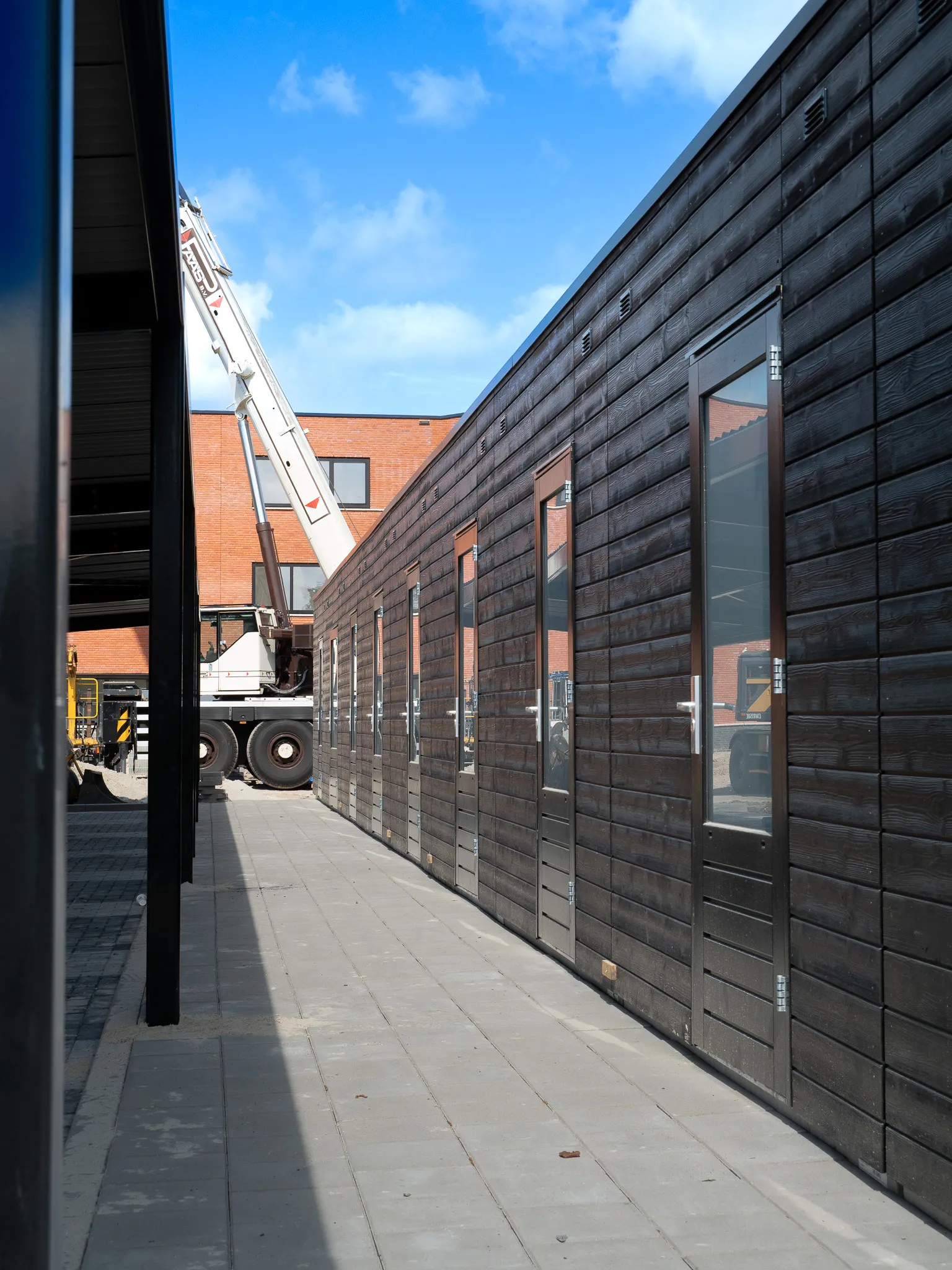 De levering en montage van de twee 9-voudige bergingsseries bij appartementencomplex Brugwachter verliepen volledig volgens planning. FramePlus verzorgde het volledige traject, van voorbereiding en logistiek tot de vakkundige plaatsing op locatie. De bergingen zijn uitgevoerd met verticale gevelbekleding van verduurzaamde vuren rabatdelen, gekozen vanwege de duurzaamheid en weerbestendigheid. De antraciete kleur en verticale belijning zorgen voor een moderne, rustige en slanke uitstraling die goed aansluit bij de architectuur van het complex en de omgeving. Tijdens de montage werd efficiënt en nauwkeurig gewerkt, met perfect aansluitende frames en oog voor details zoals ventilatie en afwerking. De twee bergingsseries bieden samen ruime, veilige en praktische opslagmogelijkheden voor bewoners van appartementencomplex Brugwachter. Dankzij de duurzame materialen en solide constructie zijn de bergingen onderhoudsarm en toekomstbestendig. Met dit project onderstreept FramePlus haar focus op kwaliteit, uitstraling en een betrouwbare samenwerking met de opdrachtgever.